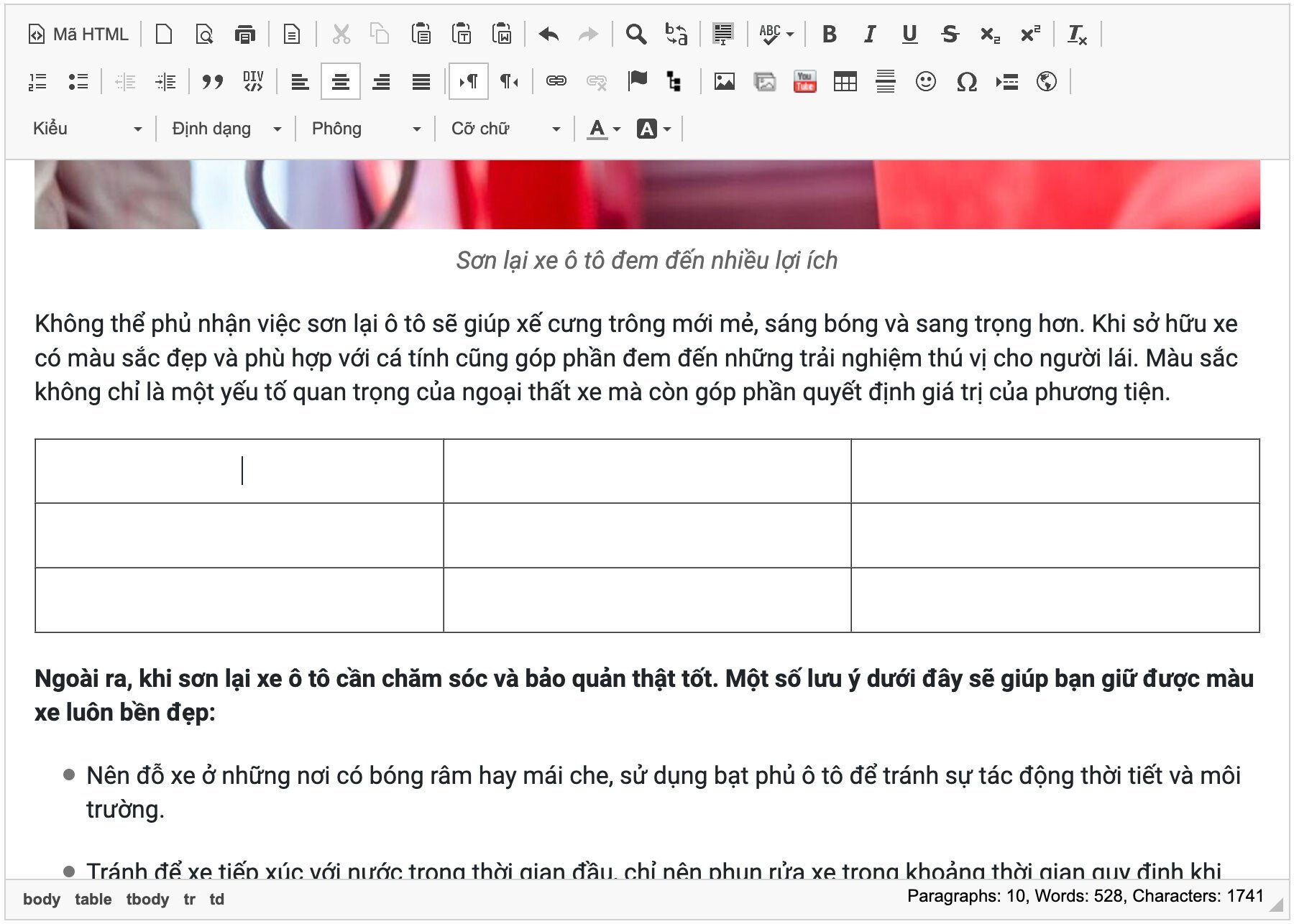 Nhập các tiêu đề đoạn văn. Sau đó trên thanh công cụ CKEditor, tìm và nhấn vào “Chèn/Xóa danh sách không thứ tự” (biểu tượng hình danh sách có ký hiệu ở đầu) như hình.